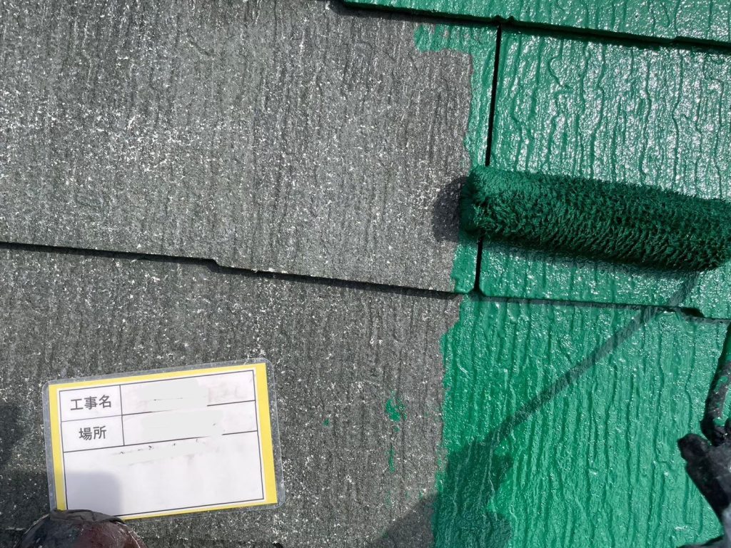 スレートのひび割れをシーリングで補修したり、棟板金の錆をケレンで落としたりする工程です。ここを飛ばすと仕上がりが長持ちしません。屋根の傷み具合によって時間が変わります。
