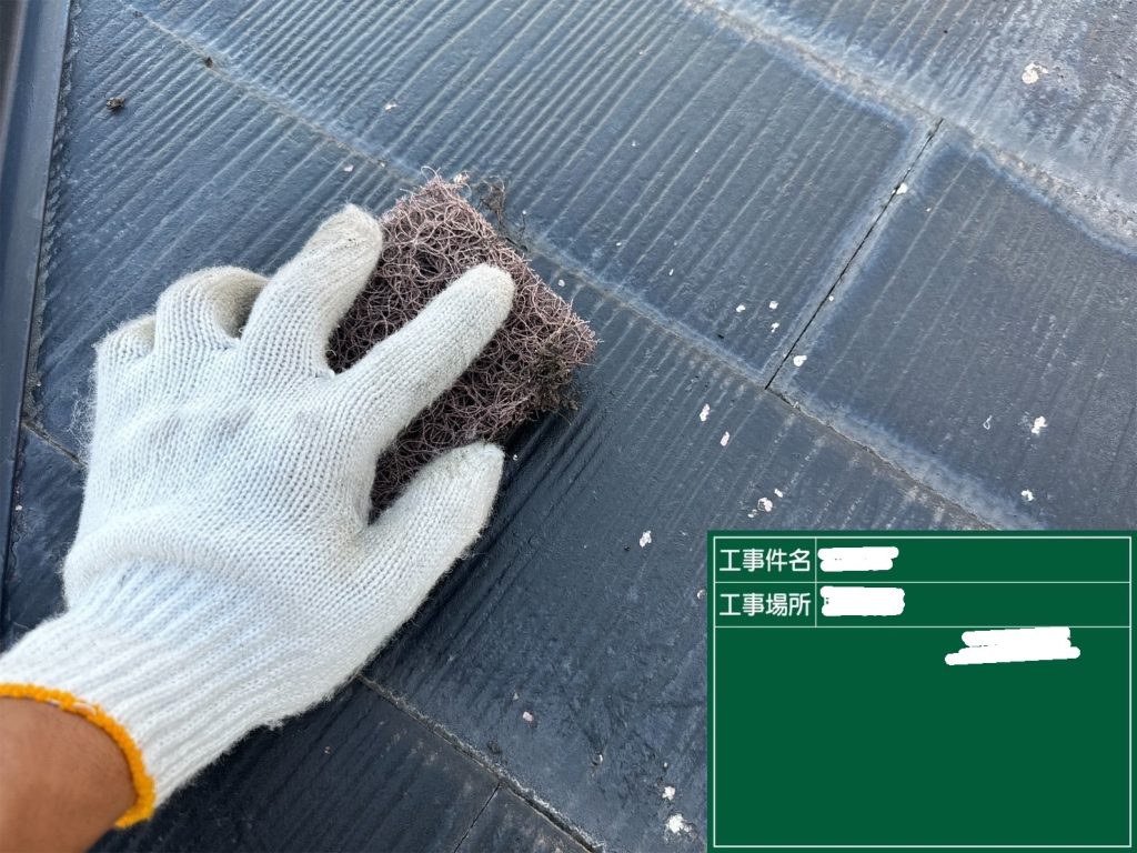 スレート屋根のコケが気になるとの事でご依頼。