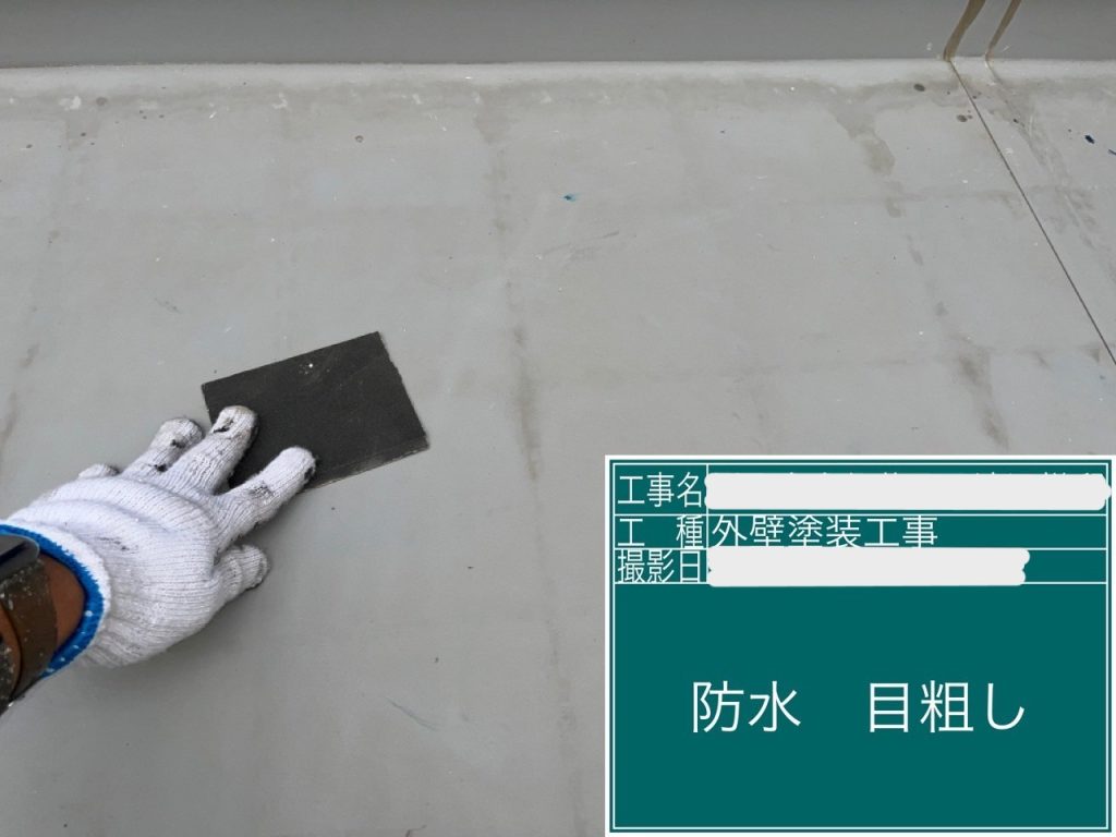 まずは汚れを落としていきます。表面を荒くする事で防水材の密着度をよくします。