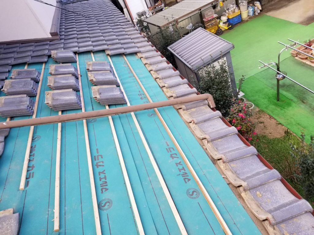 瓦を外し中の瓦桟木を撤去していきます。
