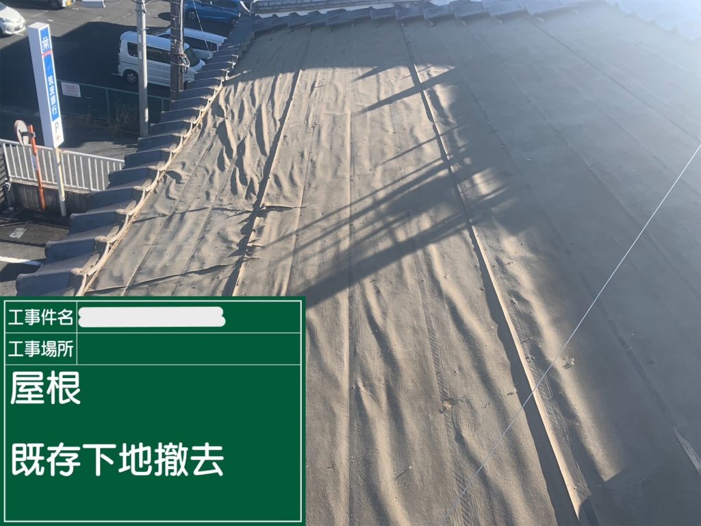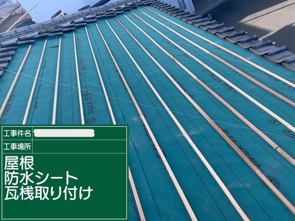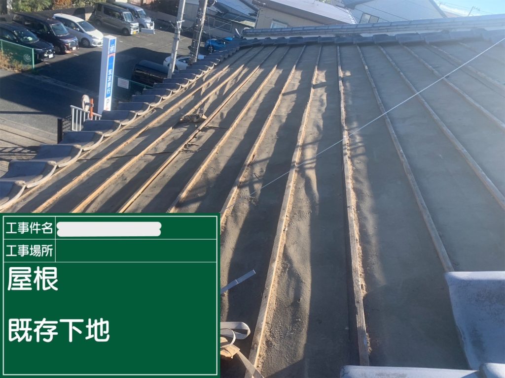 防水シート)と瓦のかけている瓦桟木の劣化が確認できたため葺き直しで対応。