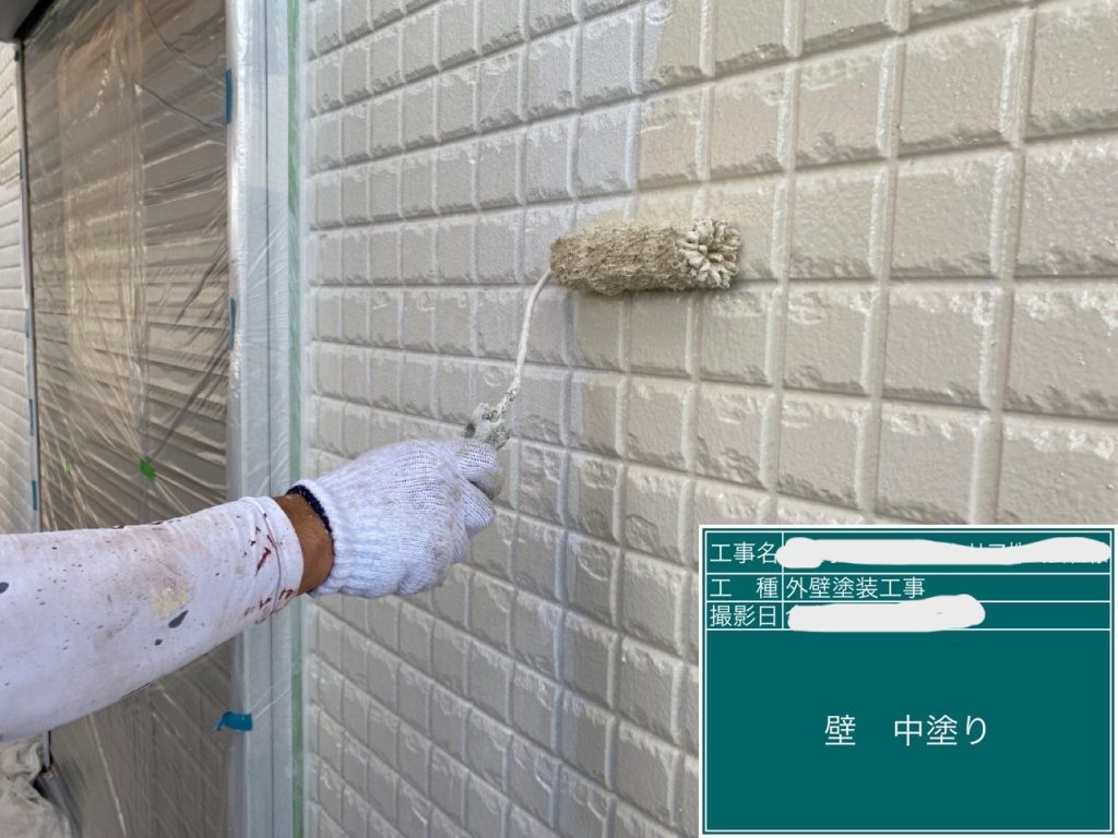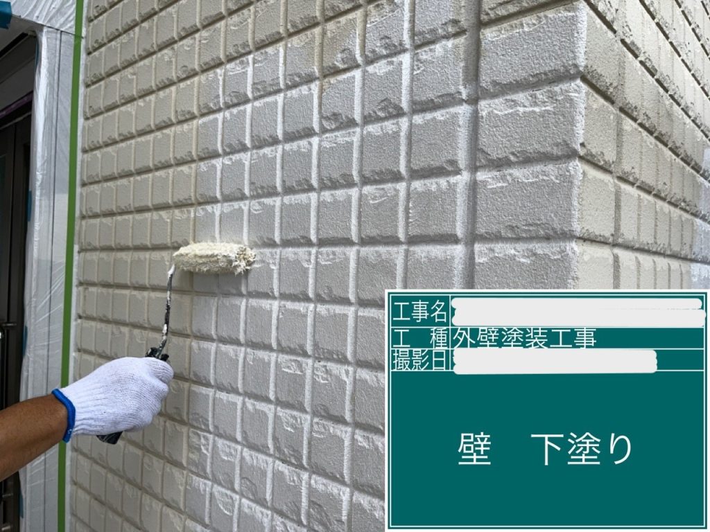 外壁塗装は三層工程になります。まずは一層目から。