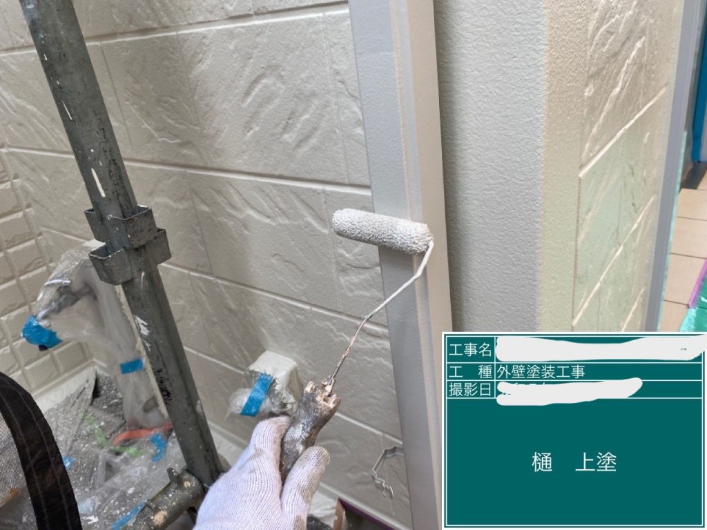 雨樋塗装になります。こちらも2層工程になります。専用の塗料を使用します。