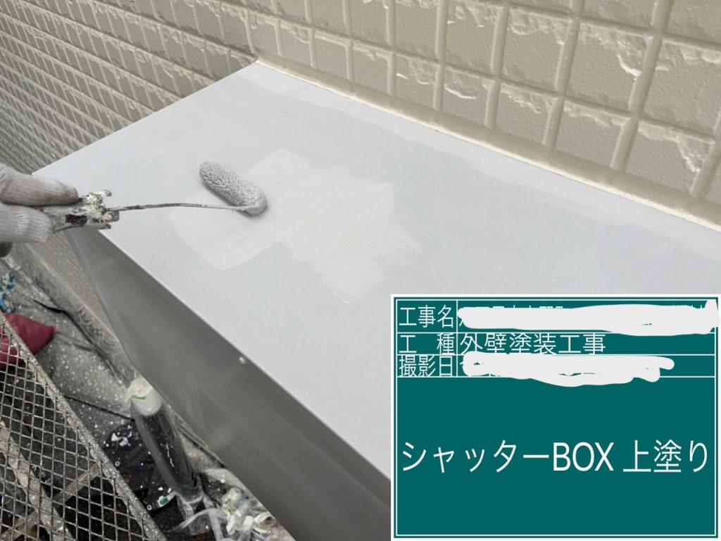 シャッターボックス塗装になります。こちらも2層工程になります。専用の塗料を使用します。