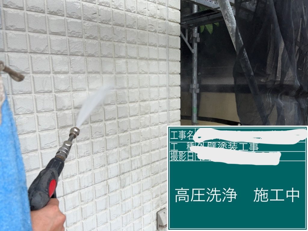 まずは全体を高圧洗浄していきます。