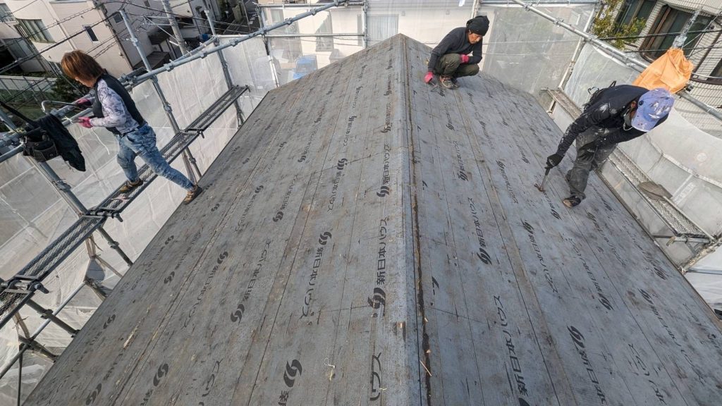 ルーフィングシートを全体に貼っていきます。